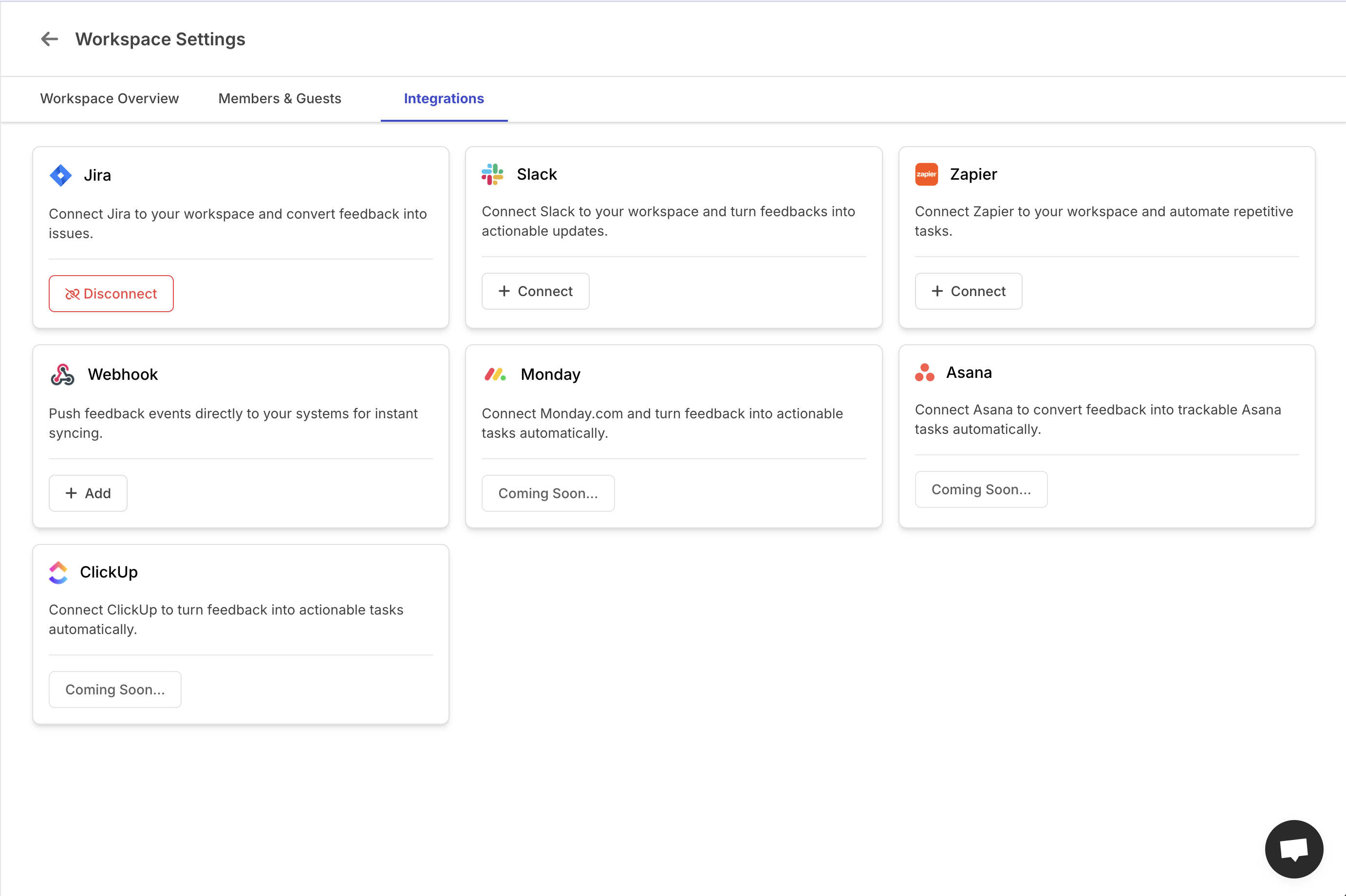 Webhook Integration — Automatically send project updates and activities to your own systems in real time.